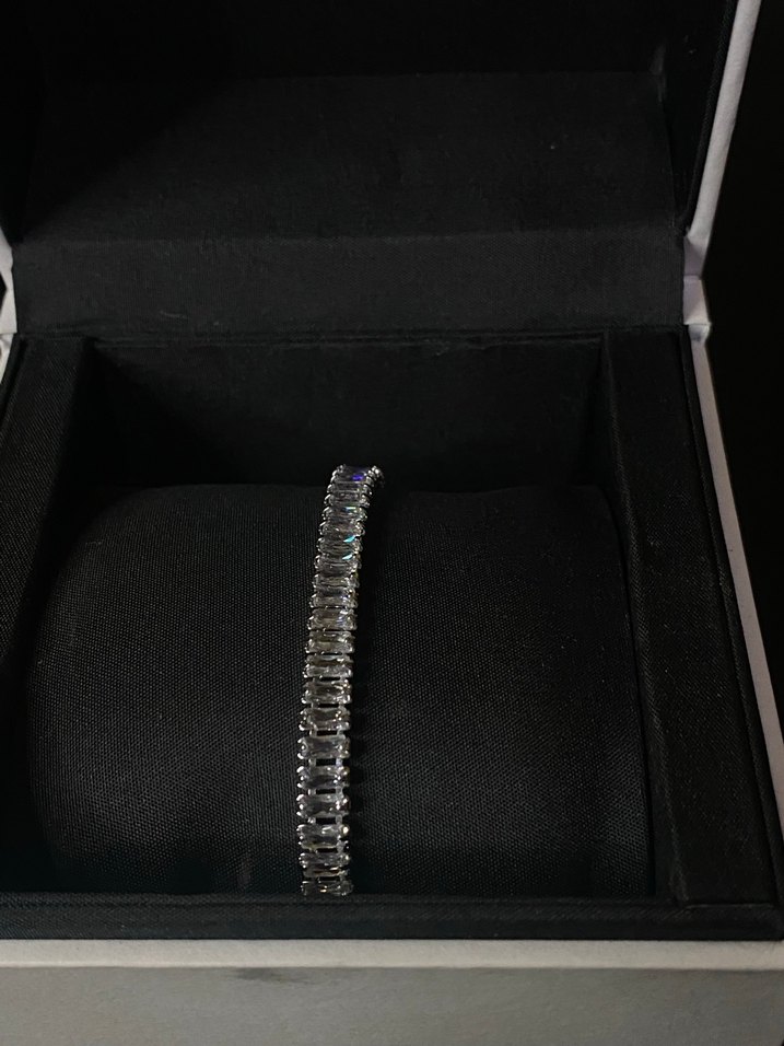 Bu kadın bileklik, koyu gri yılan desenli ve zincir detaylı yapısıyla romantik akşamlar için çağdaş ve göz alıcı bir görünüm sunar.