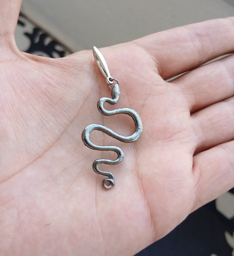 Gri renkte, yılan desenli ve zincir detaylı bu kadın charm, minimalist ve bohem tarzı yansıtarak günlük kullanıma uygundur.