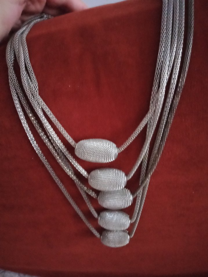 Gri renkte, yılan desenli detaylı zincirlerden oluşan uzun kadın kolye, çağdaş ve avangart tarzda günlük kullanım için uygundur.