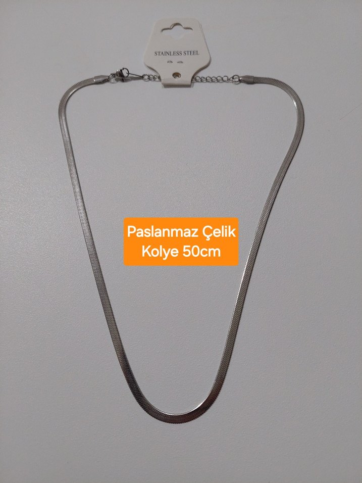 Paslanmaz çelikten 50cm uzunluğunda, gri yılan desenli zincir kolye. Minimalist ve çağdaş tarzda, günlük kullanıma uygun.
