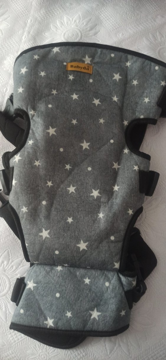 Ayarlanabilir askılı, yıldız desenli gri bebek kanguru. Babyda markalı, rahat kumaşlı taşıma aparatı.