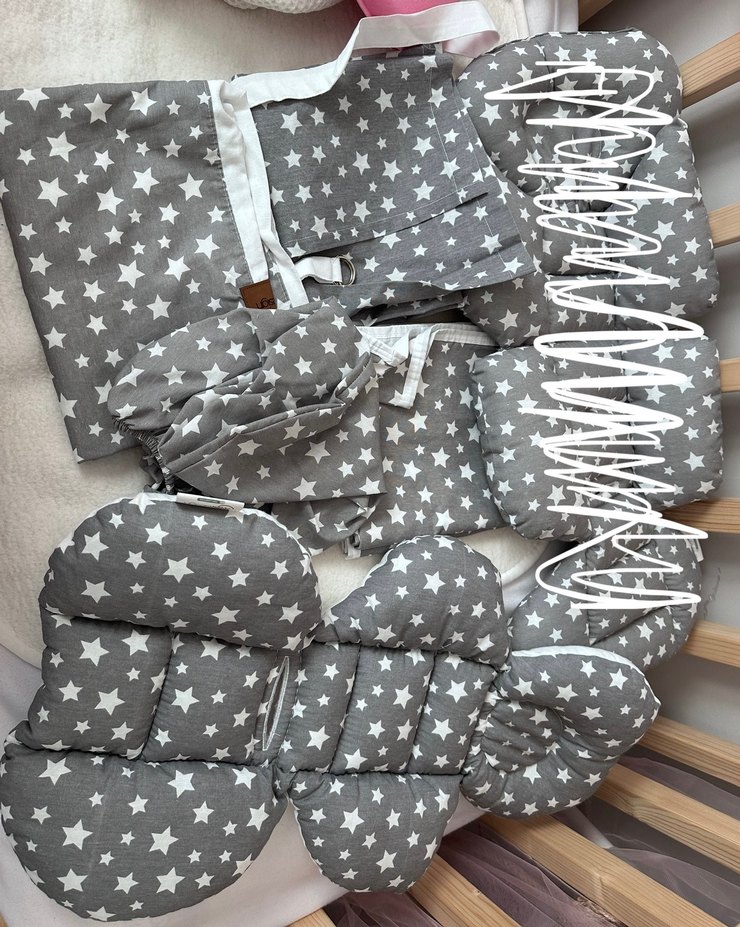 Gri Yıldız Desenli Bebek Puset Seti