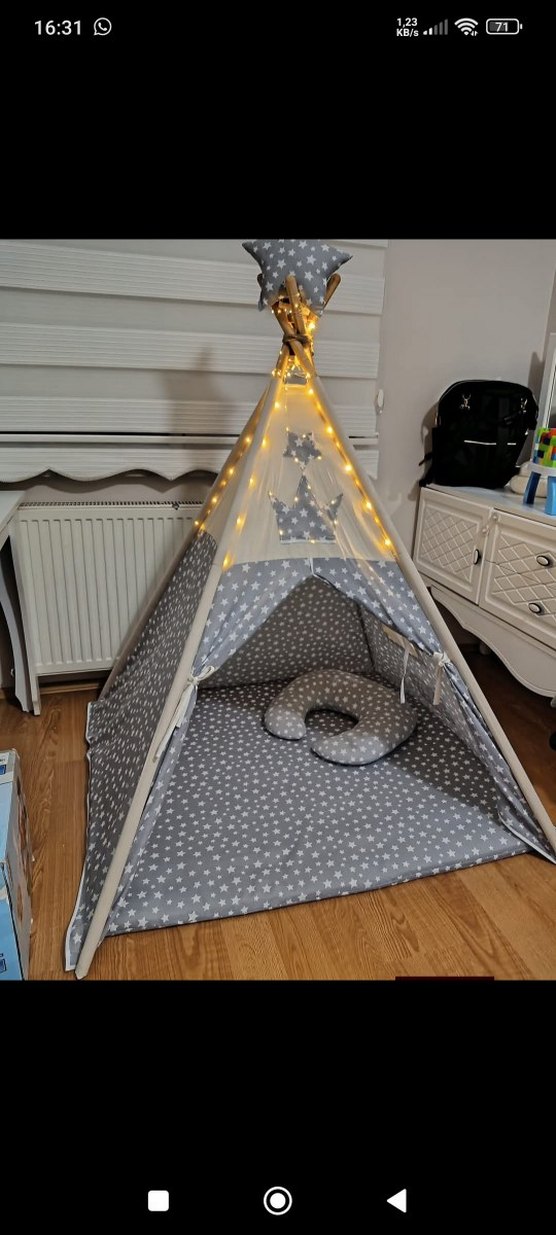 Gri Yıldız Desenli Çocuk Çadırı