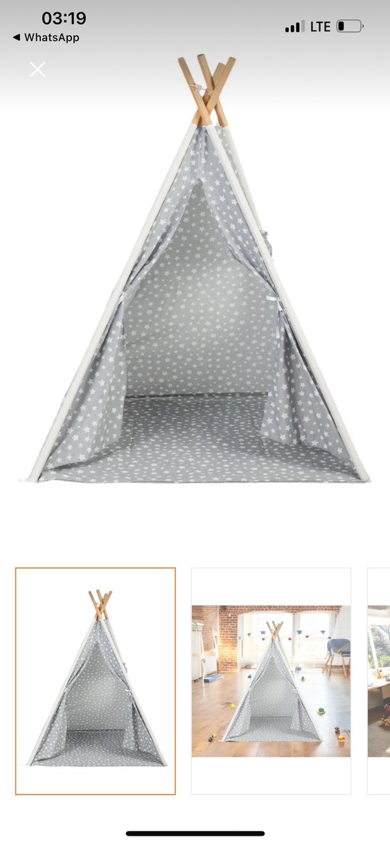 Gri renkli, yıldız desenli sentetik kumaştan yapılmış çocuk oyun çadırı, geniş iç mekanıyla rahat bir oyun alanı sunar. ⭐