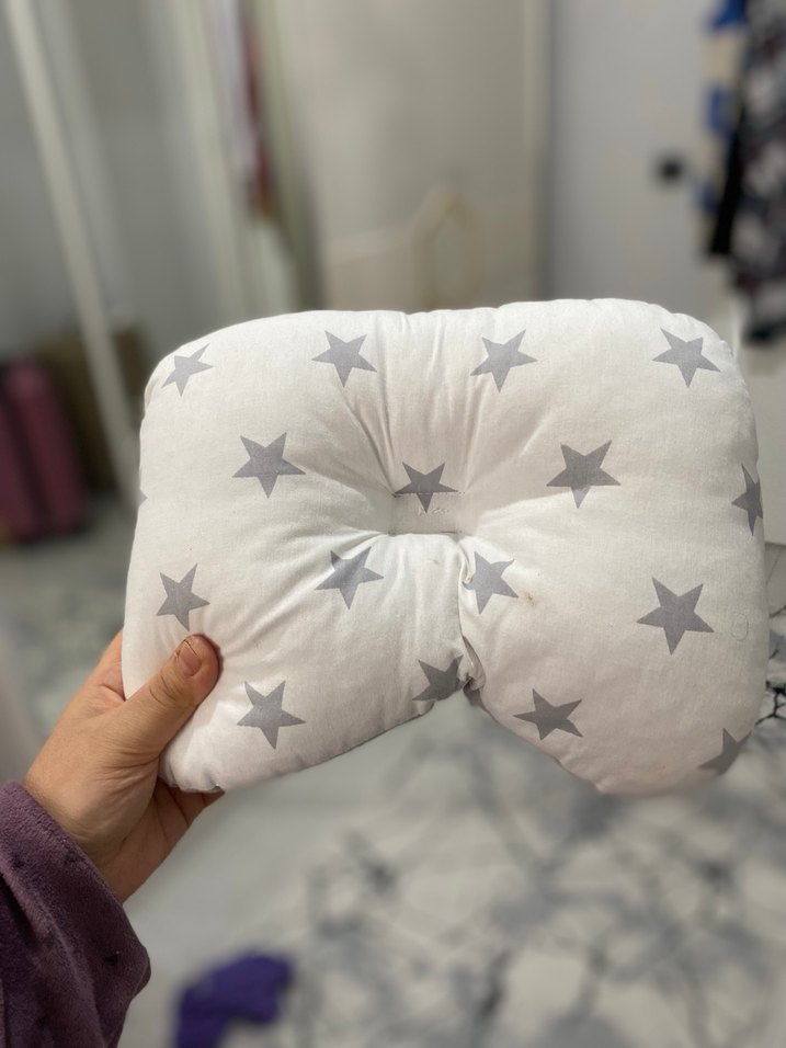 Gri yıldız desenli hamile ve emzirme yastığı, rahatlık ve destek sağlar. ⭐