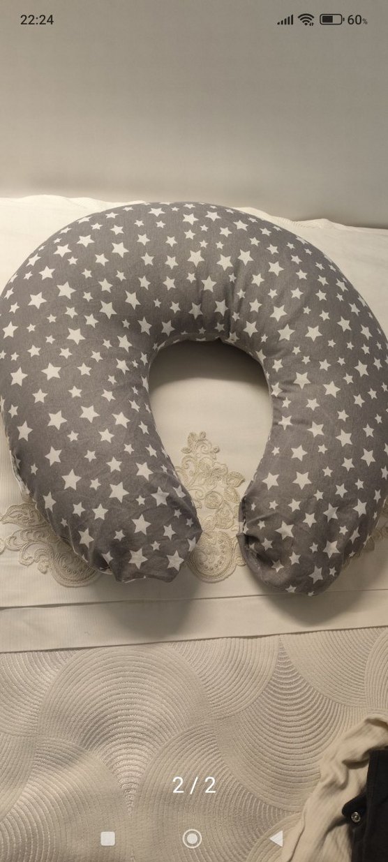 Gri renkte, yıldız desenli emzirme ve hamile yastığıdır.