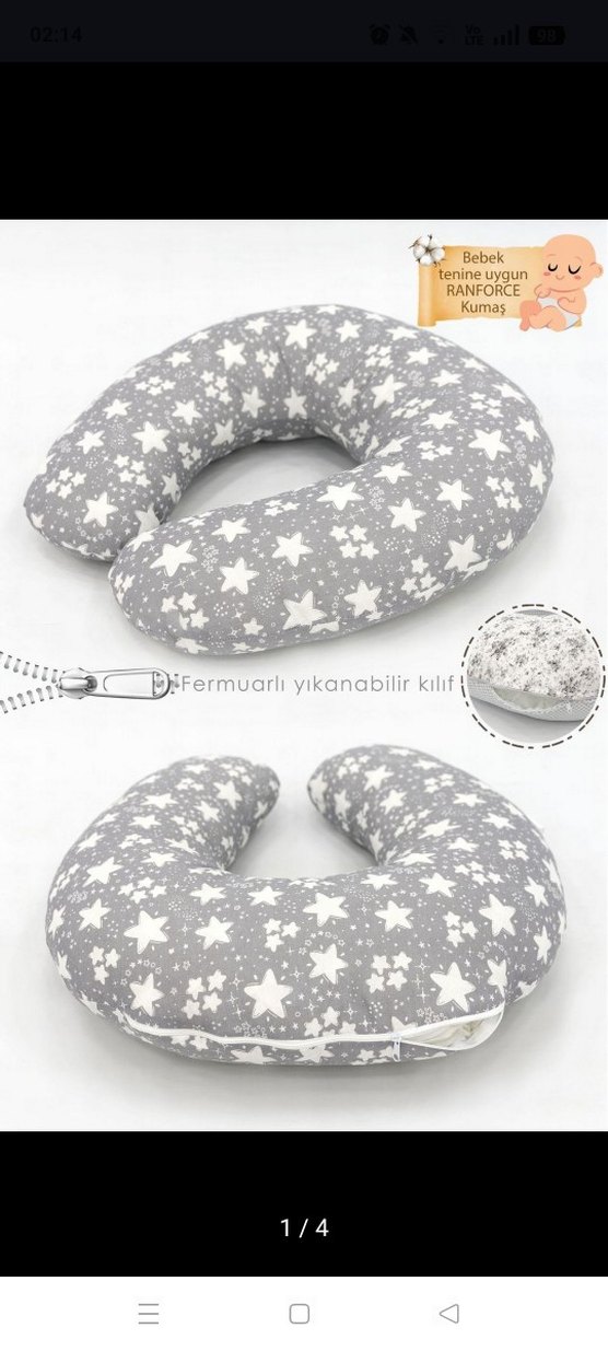 Bebek cildine uygun Ranforce kumaştan, fermuarlı ve yıkanabilir kılıfı olan gri yıldız desenli hamilelik ve emzirme yastığı.