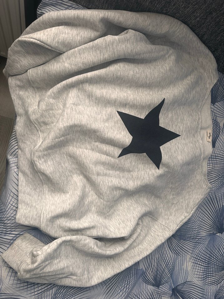 Addax bir defa kullanılmıştır Yumuşak keten kumaştan, uzun kollu ve yuvarlak yakalı rahat kesim gri sweatshirt. Siyah yıldız detayıyla sade ve şık.