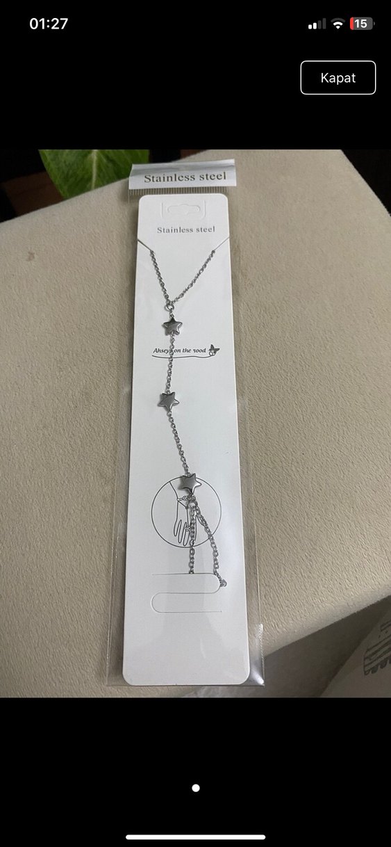 Bej ve gri renklerde, paslanmaz çelikten yapılmış yıldız detaylı zincir el bileziği, minimalist ve bohem tarzı bir arada sunar. Uygulamadan aldım