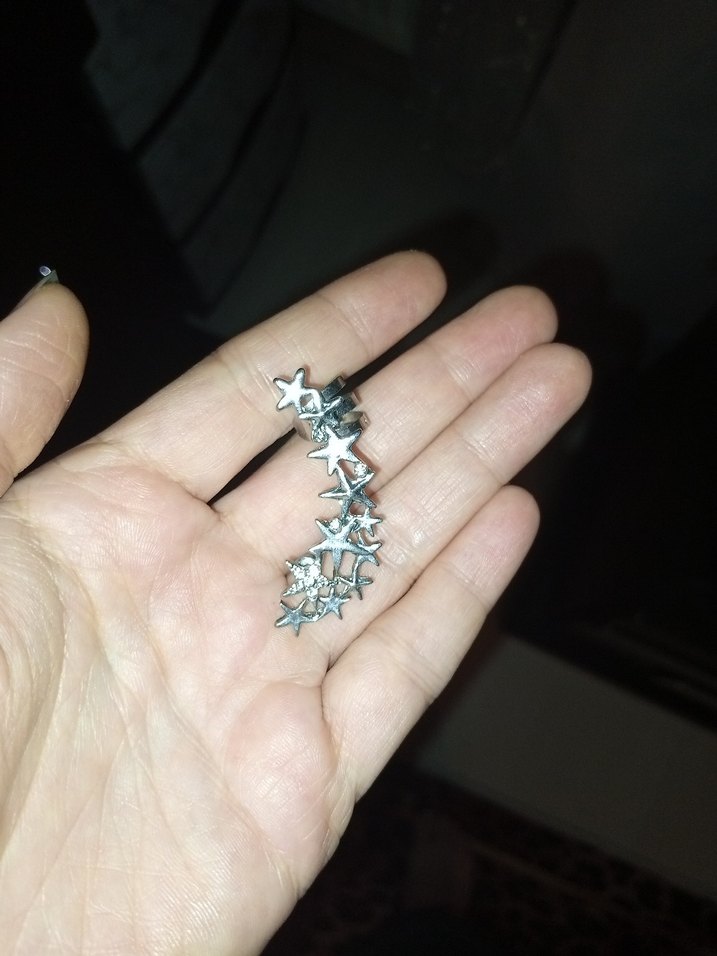 Gri renkte, yıldız desenli ve payetli rock punk tarzı midi küpe, günlük kullanım için uygun. ⭐