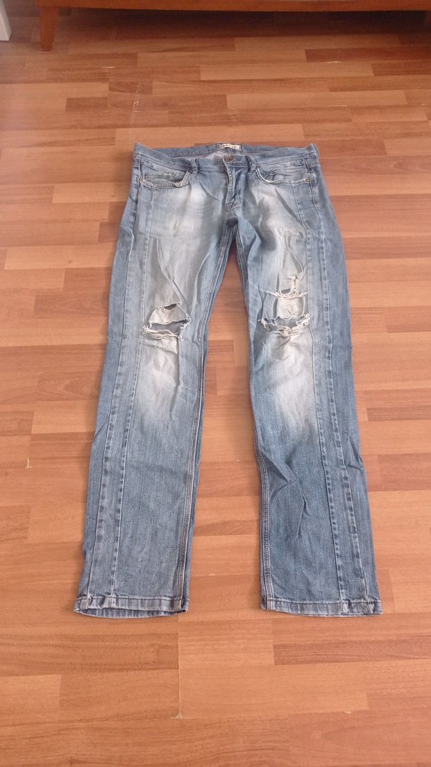 Gri Yırtık Bol Kesim Denim Pantolon