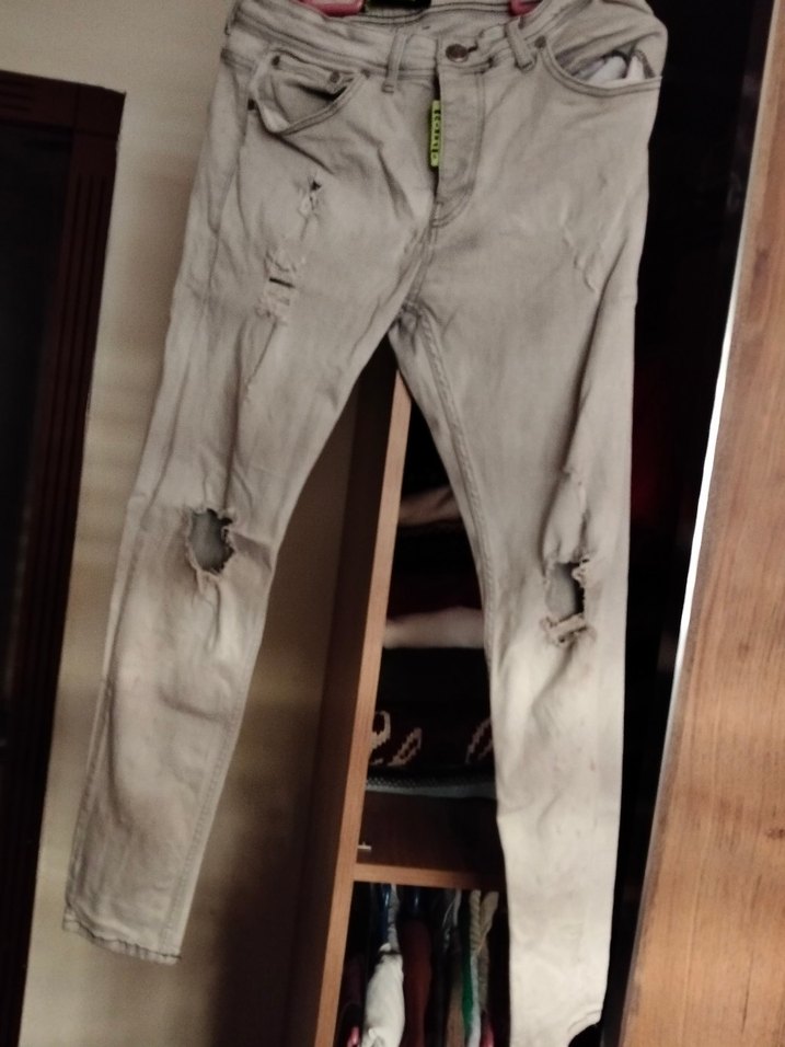 Gri Yırtık Detaylı Erkek Denim Pantolon