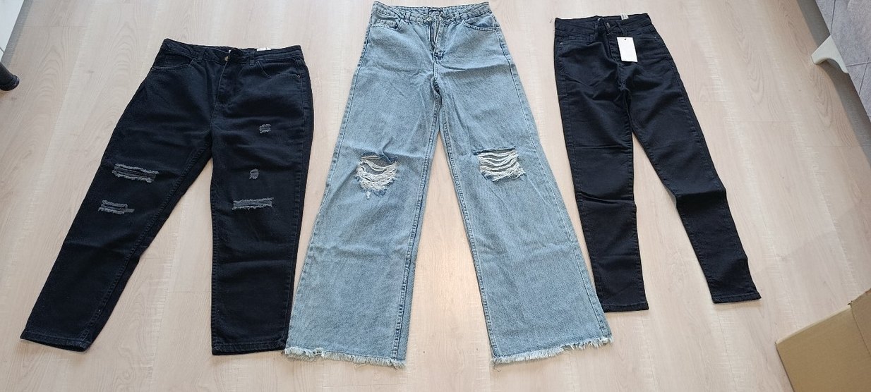 3 adet Gri Yırtık Detaylı Kadın Bol Kesim Midi Kot Pantolon