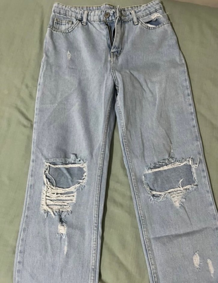 Gri Yırtık Detaylı Kadın Denim Pantolon