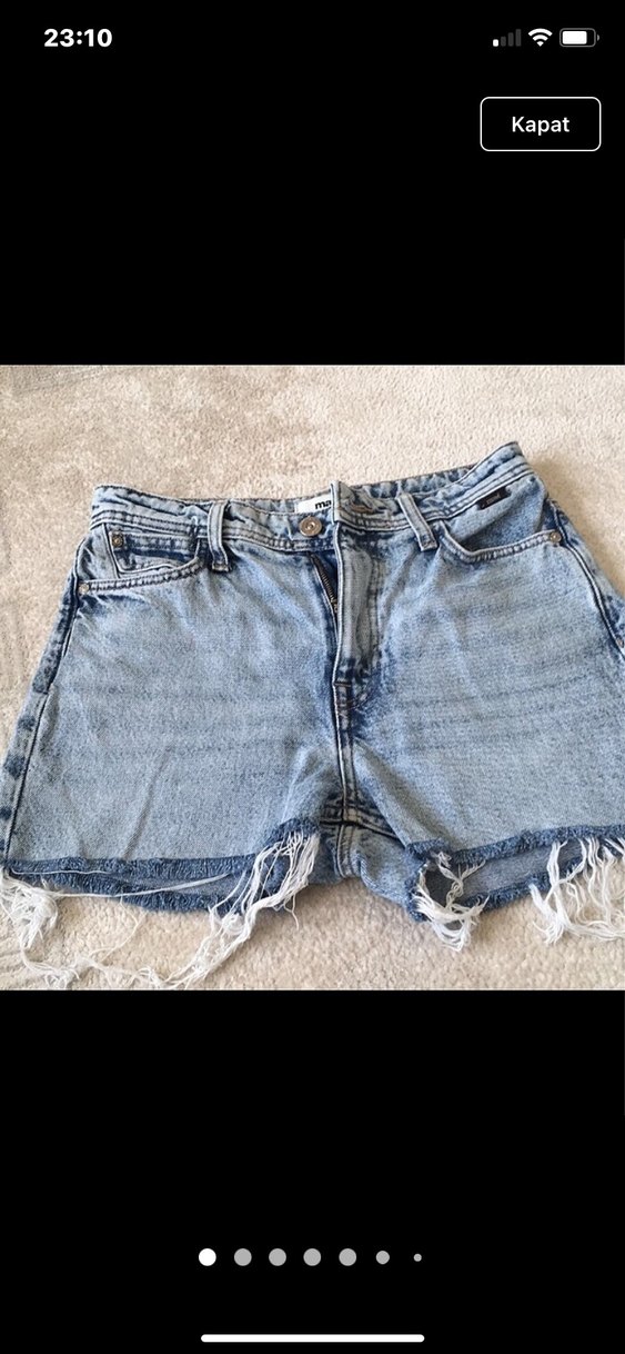 Bol kesim, kısa paçalı kadın kot şort, yırtık detaylı ve gri-mavi renkte. Günlük kullanıma uygun, rahat ve şık bir sokak stili sunar.