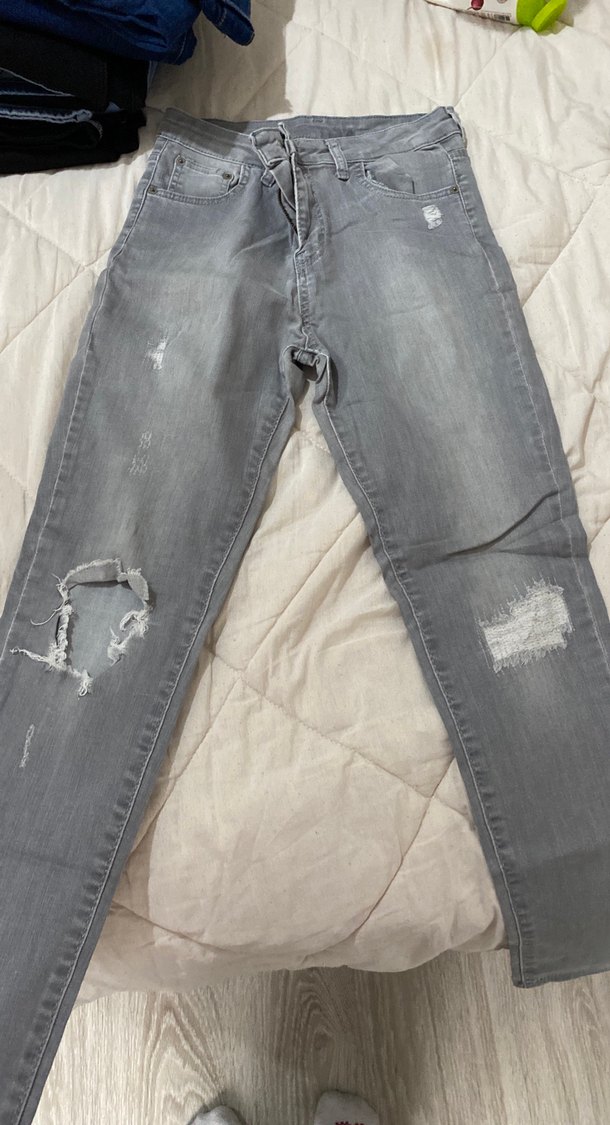 Gri Yırtık Detaylı Kadın Skinny Jean