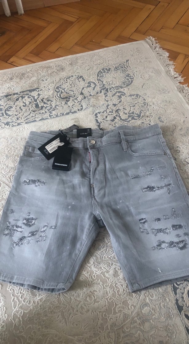 Yırtık detaylı, bol kesim gri denim şort. Günlük kullanıma uygun, sokak stiline uygun tokalı tasarım. 48 bel ölçüsü boyu52 cm