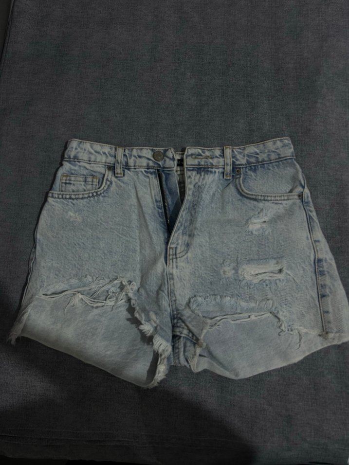 Gri kot kumaştan, yırtık detaylı ve salaş kesime sahip mini kadın şort. Günlük kullanıma uygun, grunge punk tarzından ilham alan rahat ve şık bir parça.