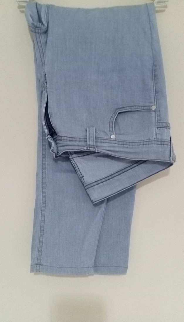 Gri tonlarda renkte, regular fit kesime sahip kadın denim pantolon. Fermuarlı detayı ve midi boyu ile günlük rahat ve sokak stili için uygundur.