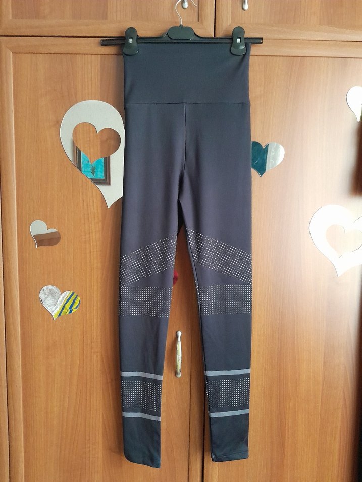Gri, yüksek belli, esnek sentetik kumaştan yapılmış, spor ve sokak stili için uygun, midi uzunlukta, noktalı detaylara sahip tayt. ♀️boyu yaklaşık 90 cm