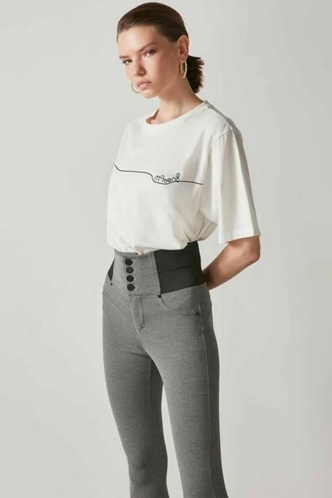 Gri Yüksek Bel Tayt Pantolon