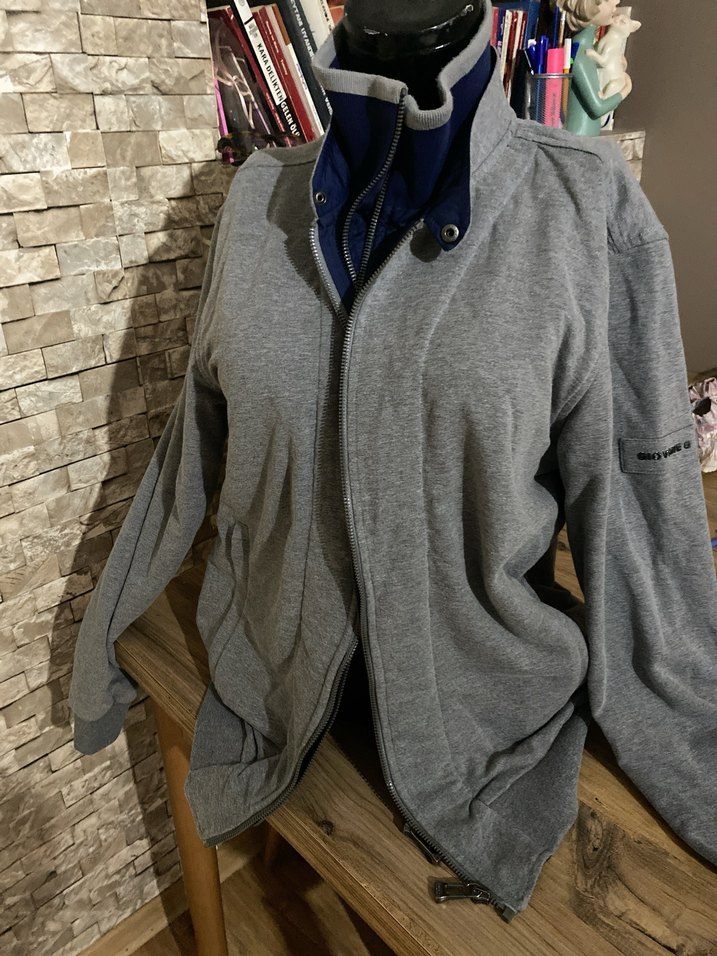 Bu gri erkek sweatshirt, yüksek yaka ve fermuarlı ön tasarıma sahiptir. Bol kesimi ve uzun kollu, yumuşak ve rahat kumaşıyla günlük kullanım için uygundur. Orijinaldir hiç kullanılmadı