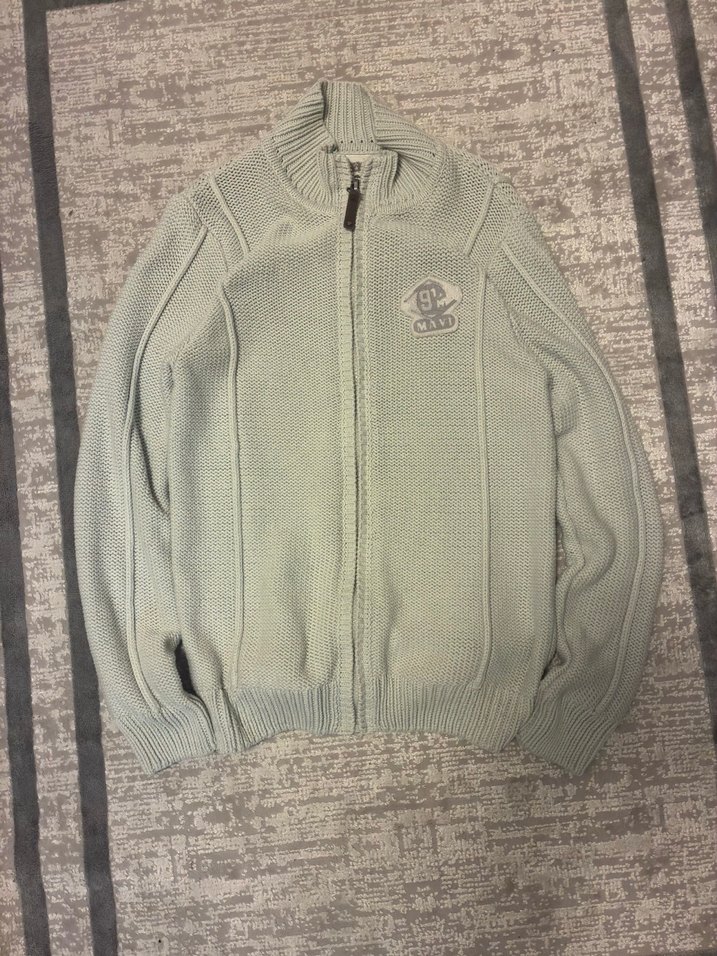 Gri renkte, yüksek yakalı örgü erkek hırka, uzun kollu ve vücuda oturan kesimiyle rahat günlük kullanım için uygundur.