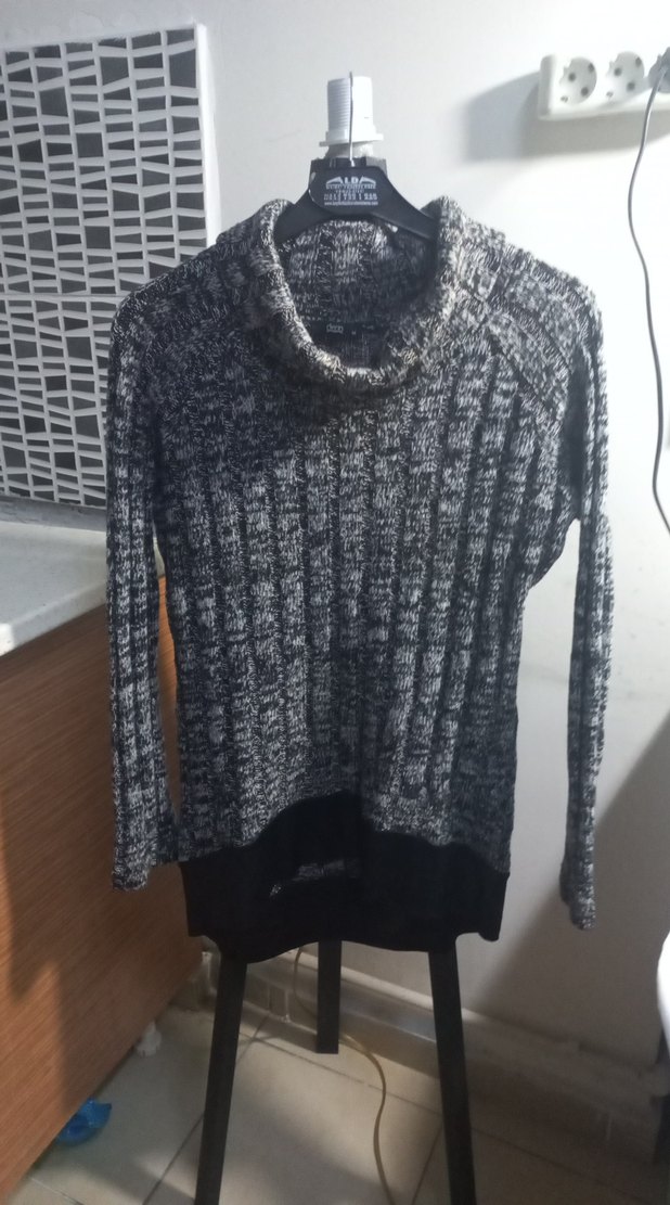 Gri Yüksek Yaka Örgü Kadın Kazak - Görsel 2