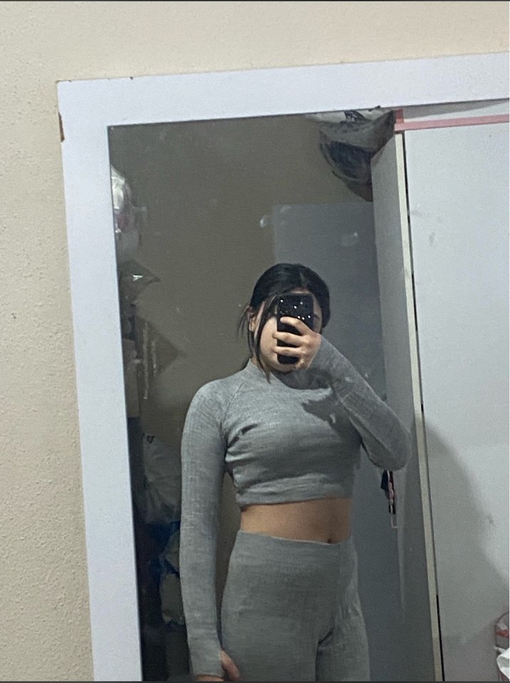 Gri, yüksek yakalı ve uzun kollu bu fitted crop top, günlük kullanım için şık ve rahat bir görünüm sunar. Desensiz tasarımı ve athleisure tarzı ile çok yönlüdür.
