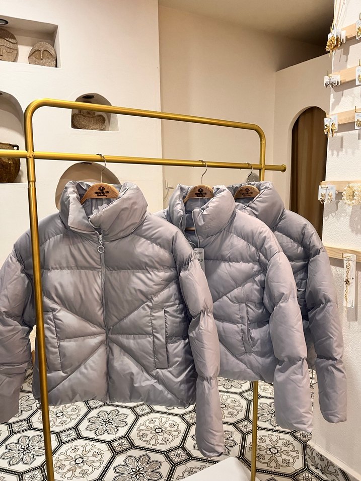 Gri Yüksek Yakalı Kadın Kışlık Mont