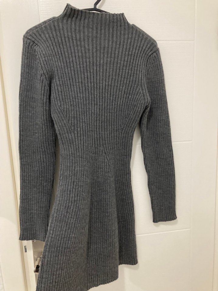 Gri Yüksek Yakalı Kadın Triko Elbise