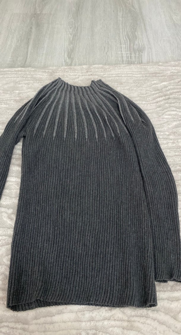 Gri renkte, yüksek yakalı ve uzun kollu, fit kesim kadın triko kazak. Uzun boyu ve desensiz yapısıyla rahat ve şık bir görünüm sunar.