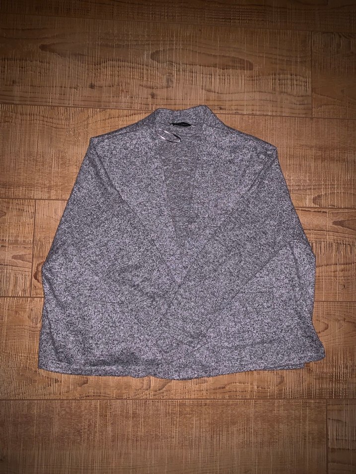 Gri renkli, yüksek yakalı ve uzun kollu örme kazak, rahat bir gevşek kesime sahiptir. Yumuşak ve sıcak kumaşı günlük sokak stiline uygundur.