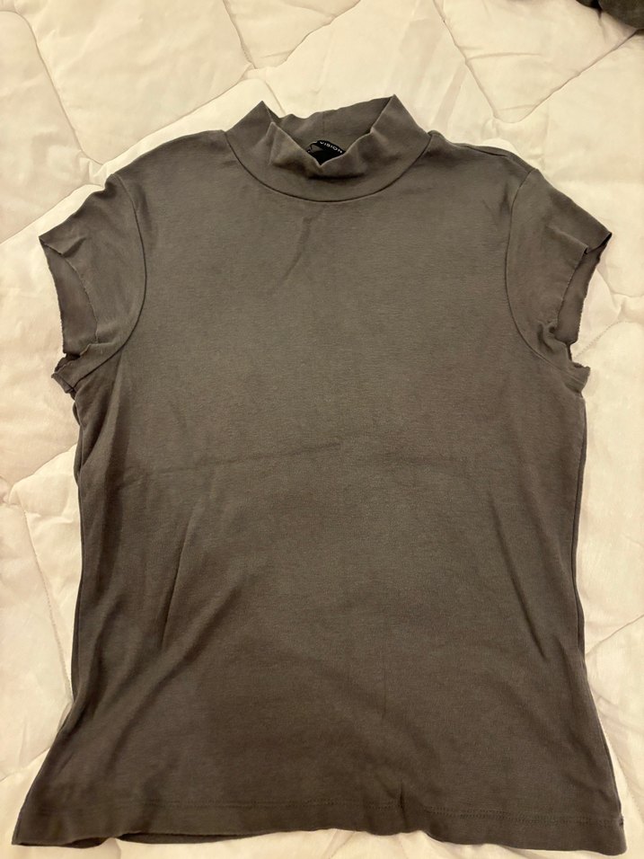Gri Yüksek Yakalı Kısa Kollu Kadın Tişört