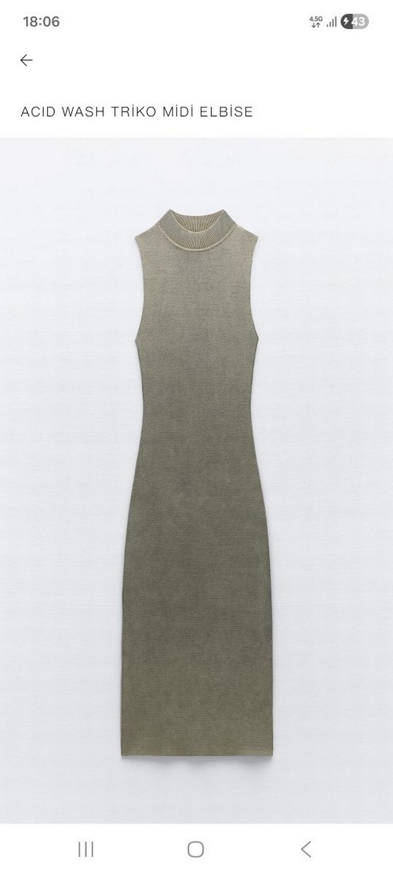 Gri renkte, kolsuz ve yüksek yakalı triko midi elbise, ince kesimi ve düz tasarımıyla günlük kullanıma uygun minimal şıklık sunar.
