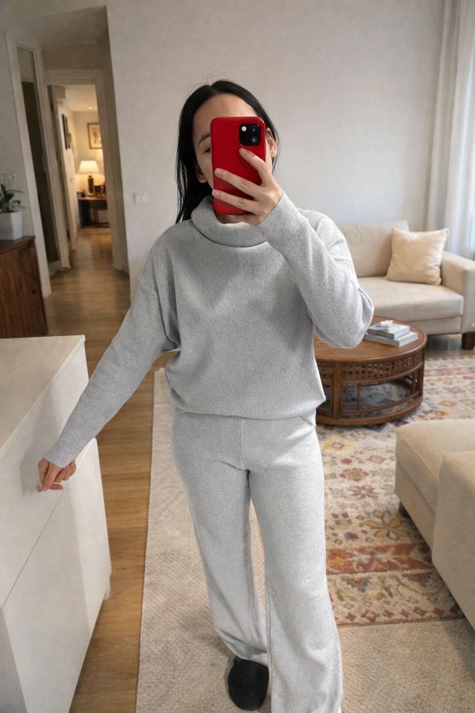 Beden: S/M/L/XL mevcuttur. Gri renkli, yüksek yakalı ve uzun kollu kadın eşofman takımıdır. Yumuşak ve sıcak kumaştan üretilmiş, rahat midi boy kesime sahiptir. ✨