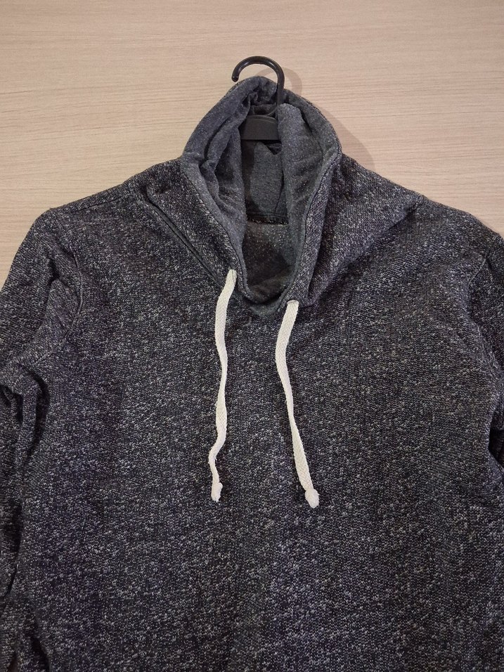 Yüksek yakalı uzun kollu gri sweatshirt. Yumuşak ve sıcak kumaştan, bol kesim ve sade tasarıma sahip, günlük kullanım için uygundur.