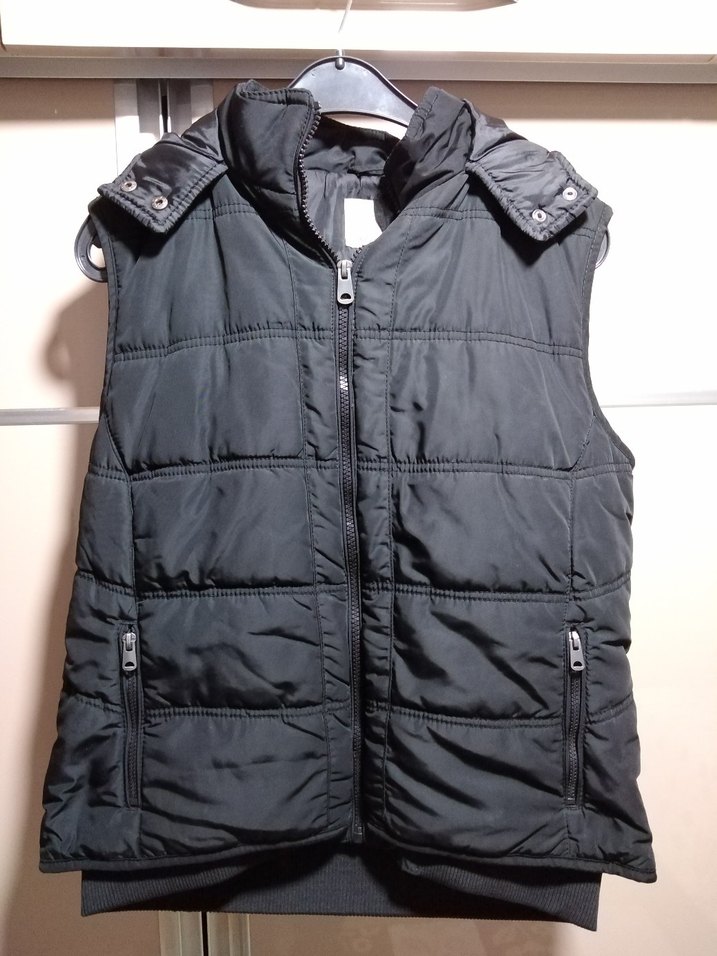 Siyah renkte, yüksek yakalı ve tokalı, yumuşak ve sıcak kumaştan yapılmış, normal boy ve dar kesim kadın yelek. Sokak stiline uygun günlük kullanıma uygun. En 51 cm boy 57 cm şapkası sabit çıkmıyor