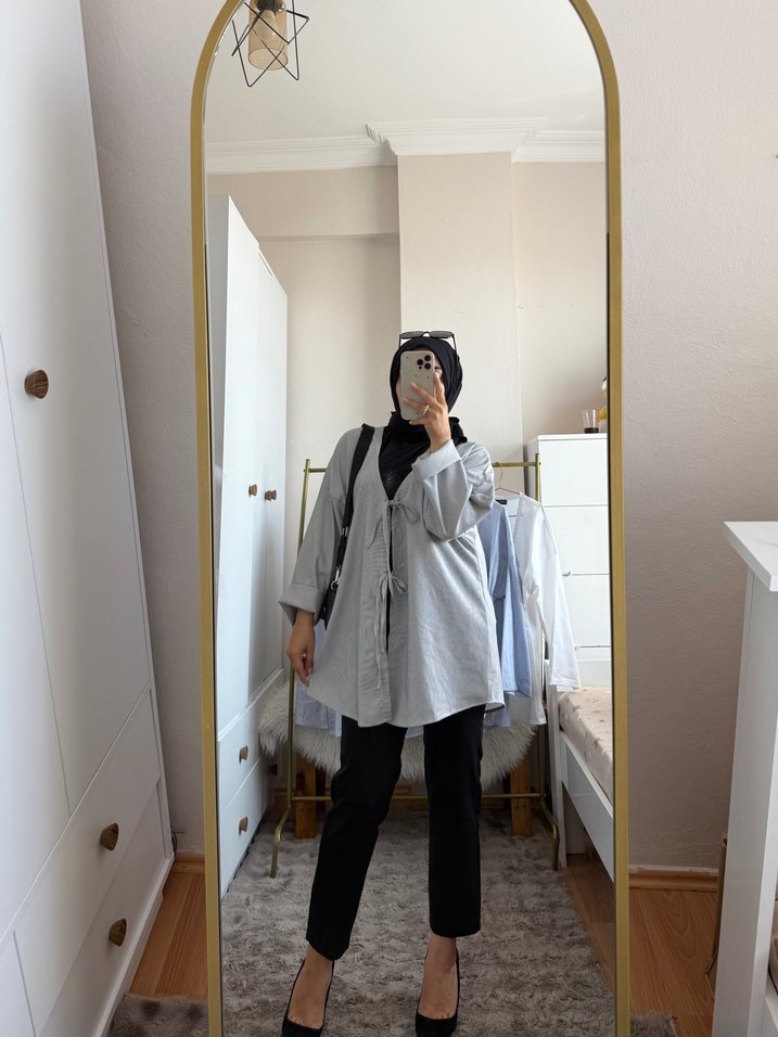 Gri renkte, yüksek yakalı ve uzun kollu denim gömlek, midi boy ve bol kesim ile günlük rahat ve şık bir görünüm sunar. Renkleri mevcut standart beden