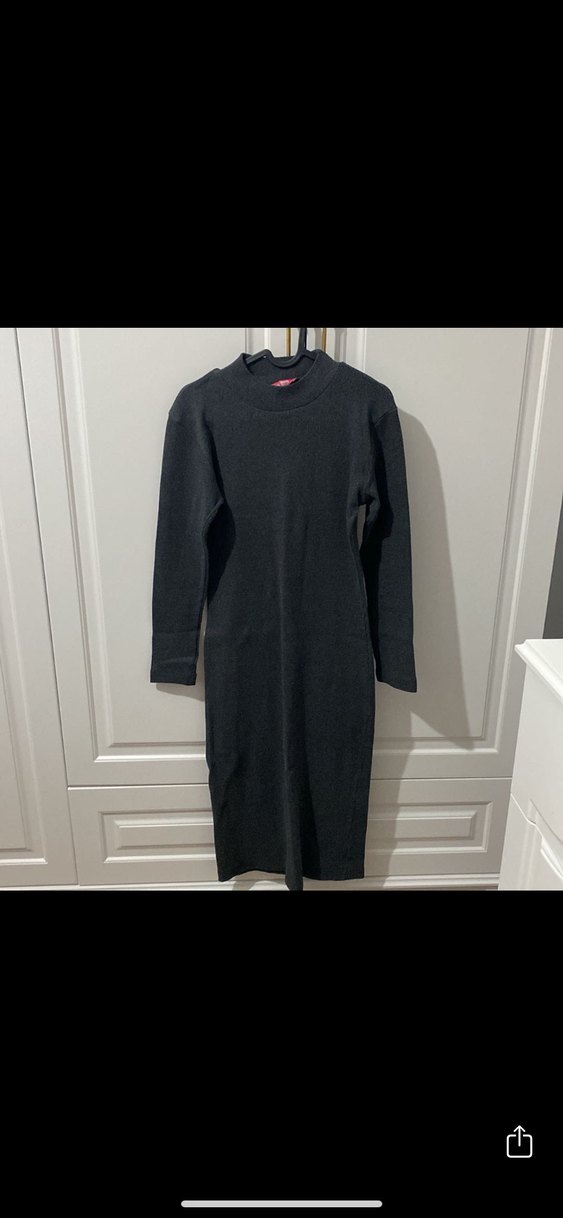 Gri renkte, yumuşak ve sıcak kumaştan yapılmış, yüksek yakalı ve uzun kollu, vücuda oturan uzun elbise. Minimalist ve desensiz tasarımıyla zahmetsiz şıklık sunar.