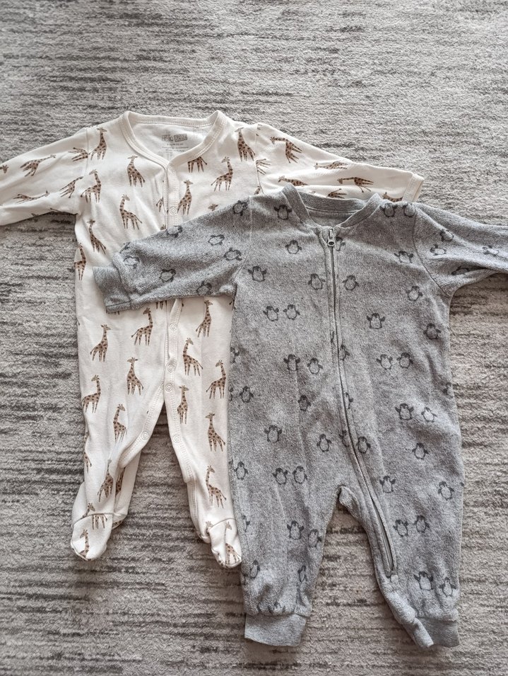 3-6 ay uyumlu Gri renkli, uzun kollu ve yüksek yakalı, yumuşak dokulu örgü kumaştan yapılmış bebek tulumu. Fermuarlı ve hafif desenlidir.