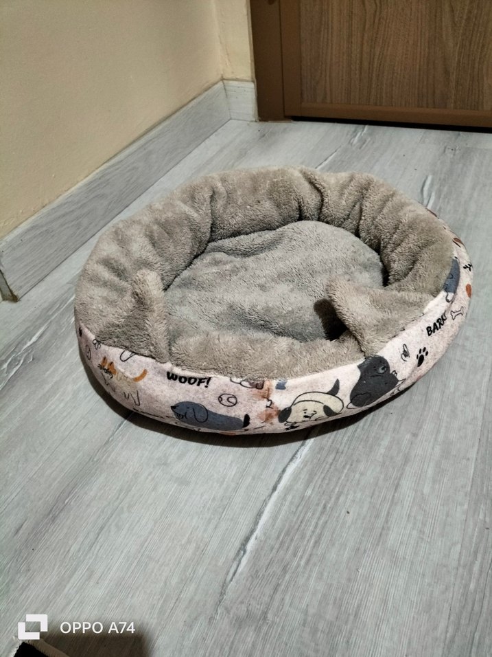 Gri renkte, yumuşak peluş iç kısımlı ve dış kenarında köpek ve pati desenleri bulunan rahat kedi yatağı. iyi durumda kılları belli etmiyor rengi gri olduğu için buz çok rahat kullanmıştık. iyi durumda
