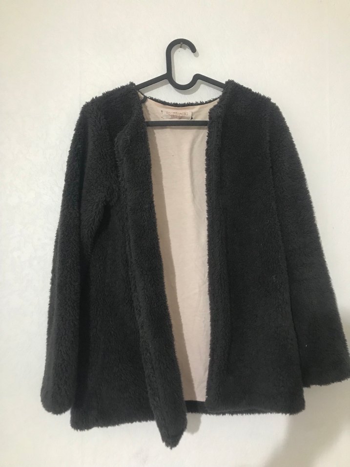 Kadınlar için uzun kollu, gevşek kesimli ve yumuşak kürk detaylı gri ceket. Midi boyda, düz ve rahat bir tasarıma sahiptir.