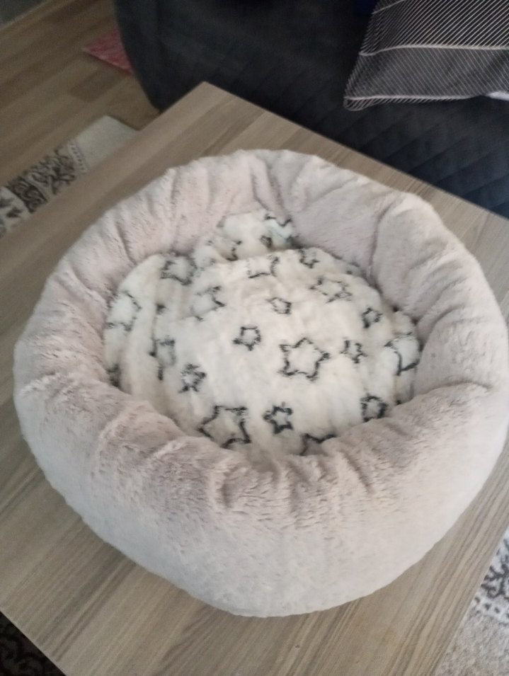 Yumuşak ve sıcak gri peluş yatak hafif yıldız desenli, rahatlık için ideal.