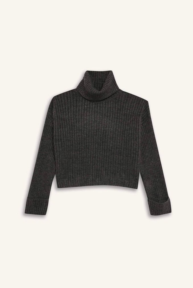 Gri Yün Balıkçı Yaka Kadın Kazak