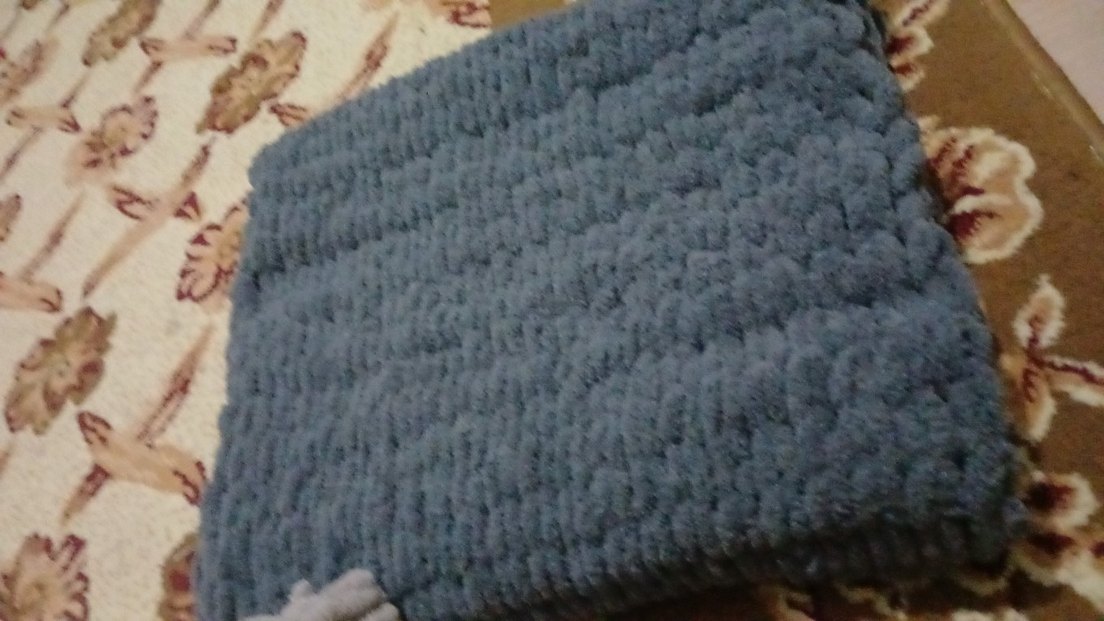 Yumuşak ve sıcak gri yünden yapılmış, desensiz çocuk battaniyesi.