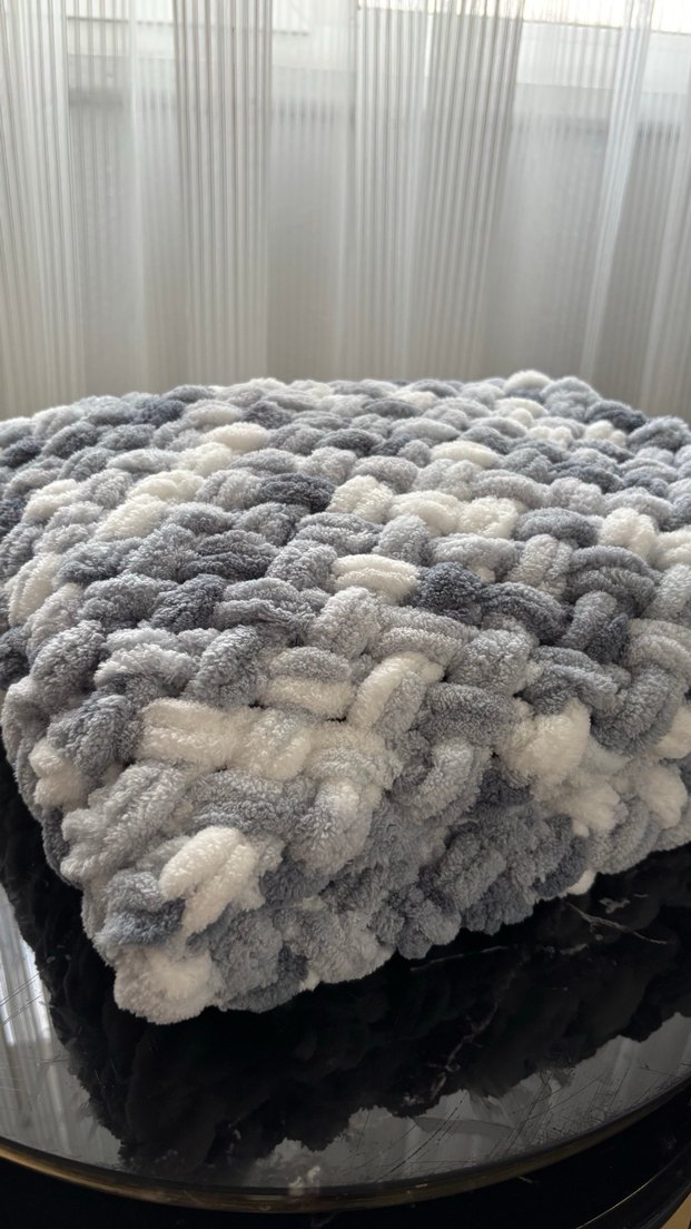 Desensiz, yumuşak dokulu gri tonlarda yün çocuk battaniyesi.