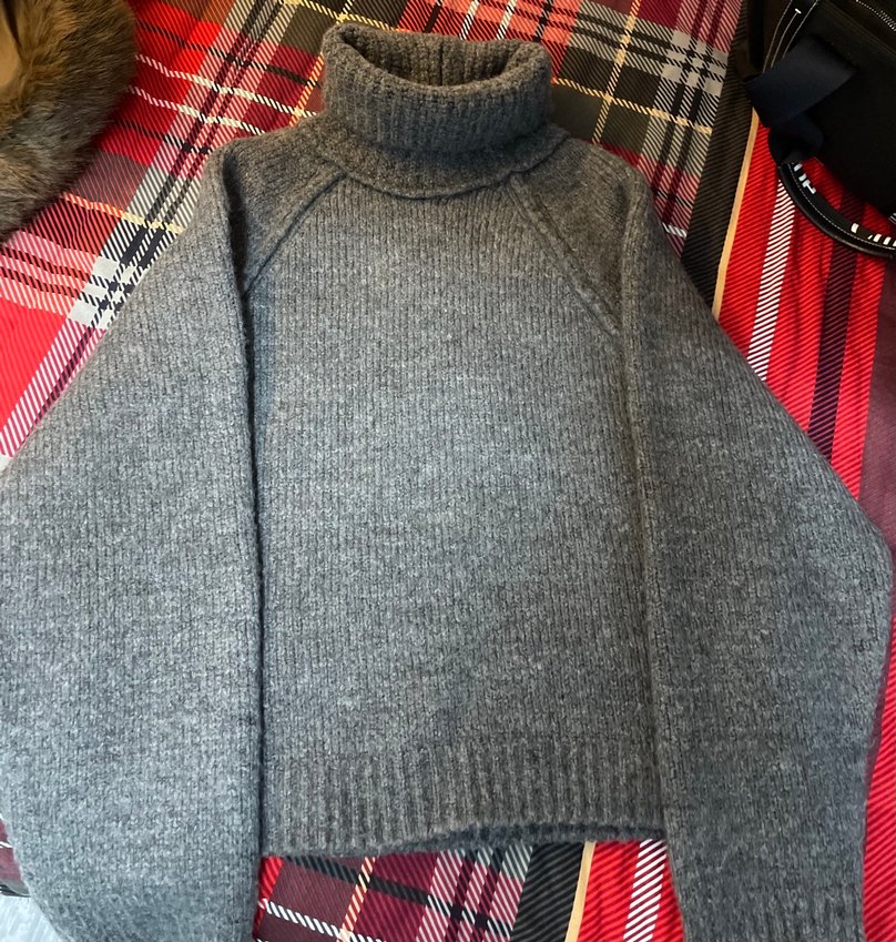 Bu gri yün kazak, balıkçı yaka ve örgü dokusuyla rahat ve sokak stili sunar. Günlük kullanım için uygundur.