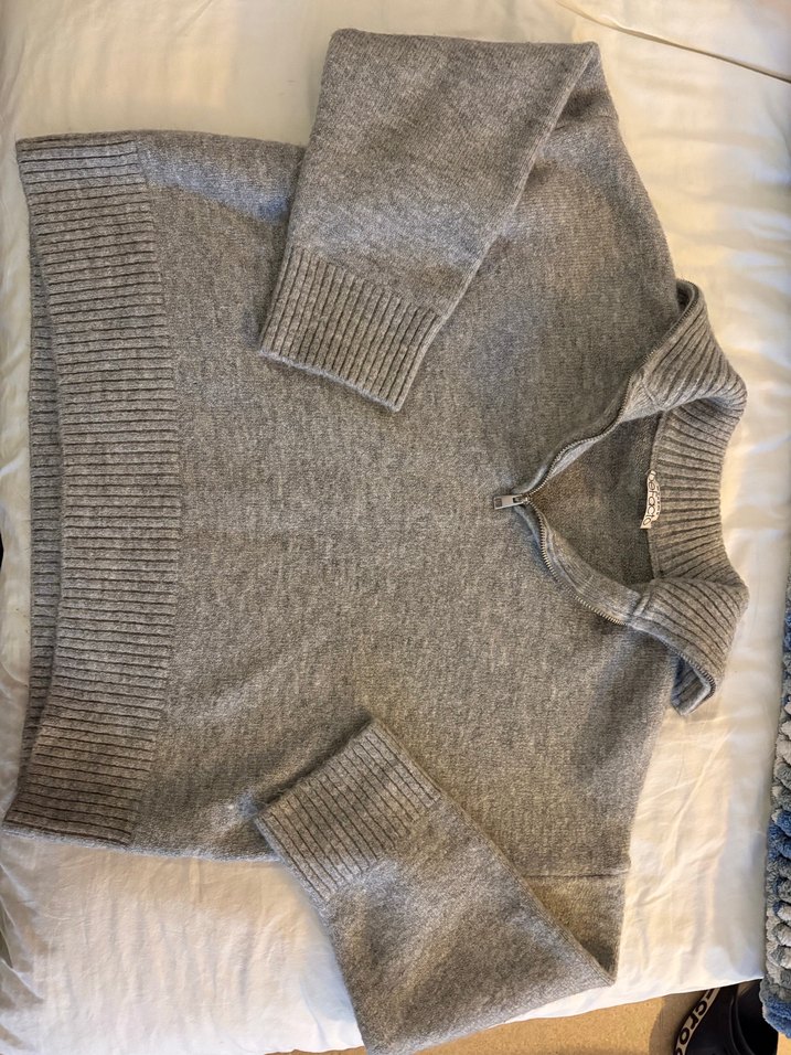 Gri Yün Kadın Örgü yarım fermuarlı kazak