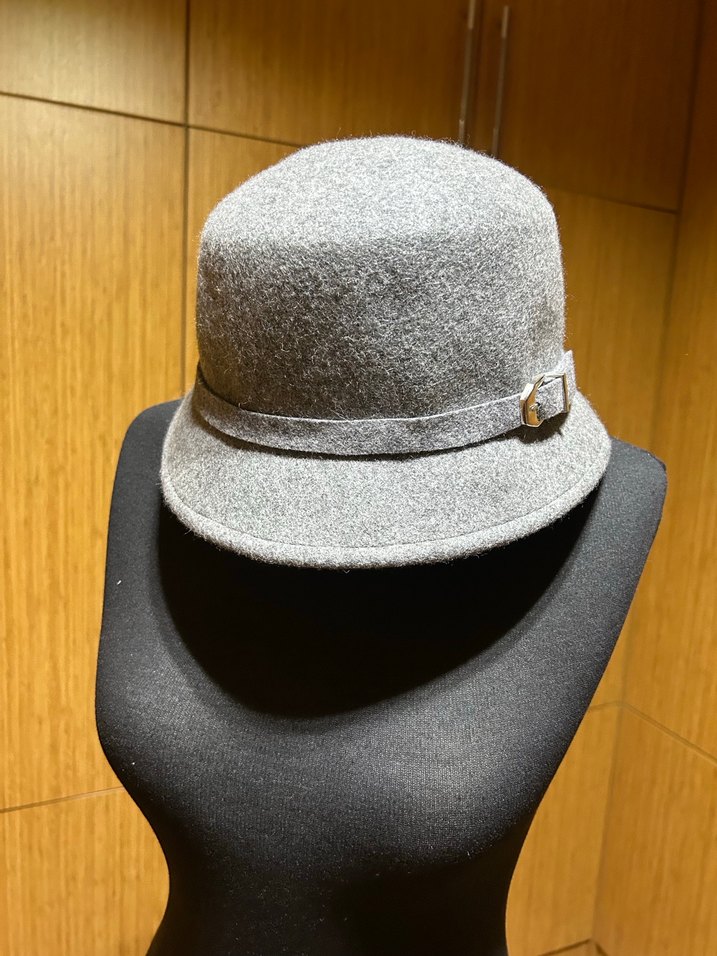Gri yünden yapılmış kadın şapka, tokalı detaya sahip ve Paris tarzında sokak modunu yansıtıyor. Zamansız, biraz nostaljik bir havası var.